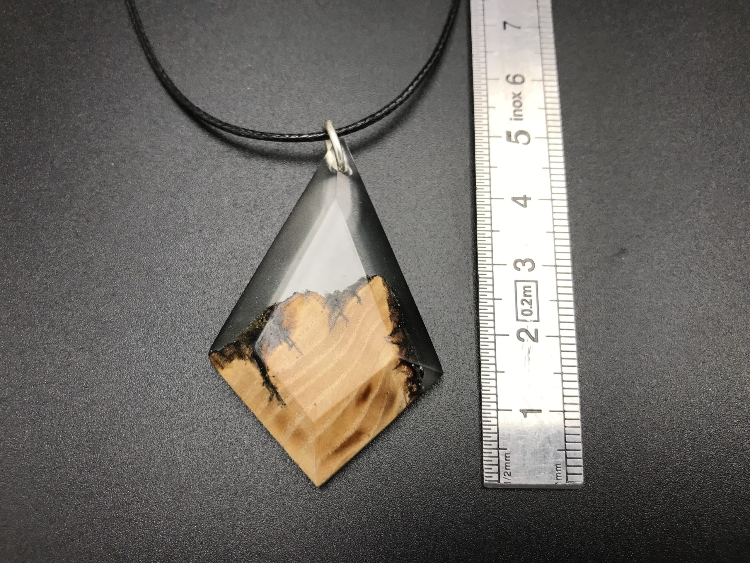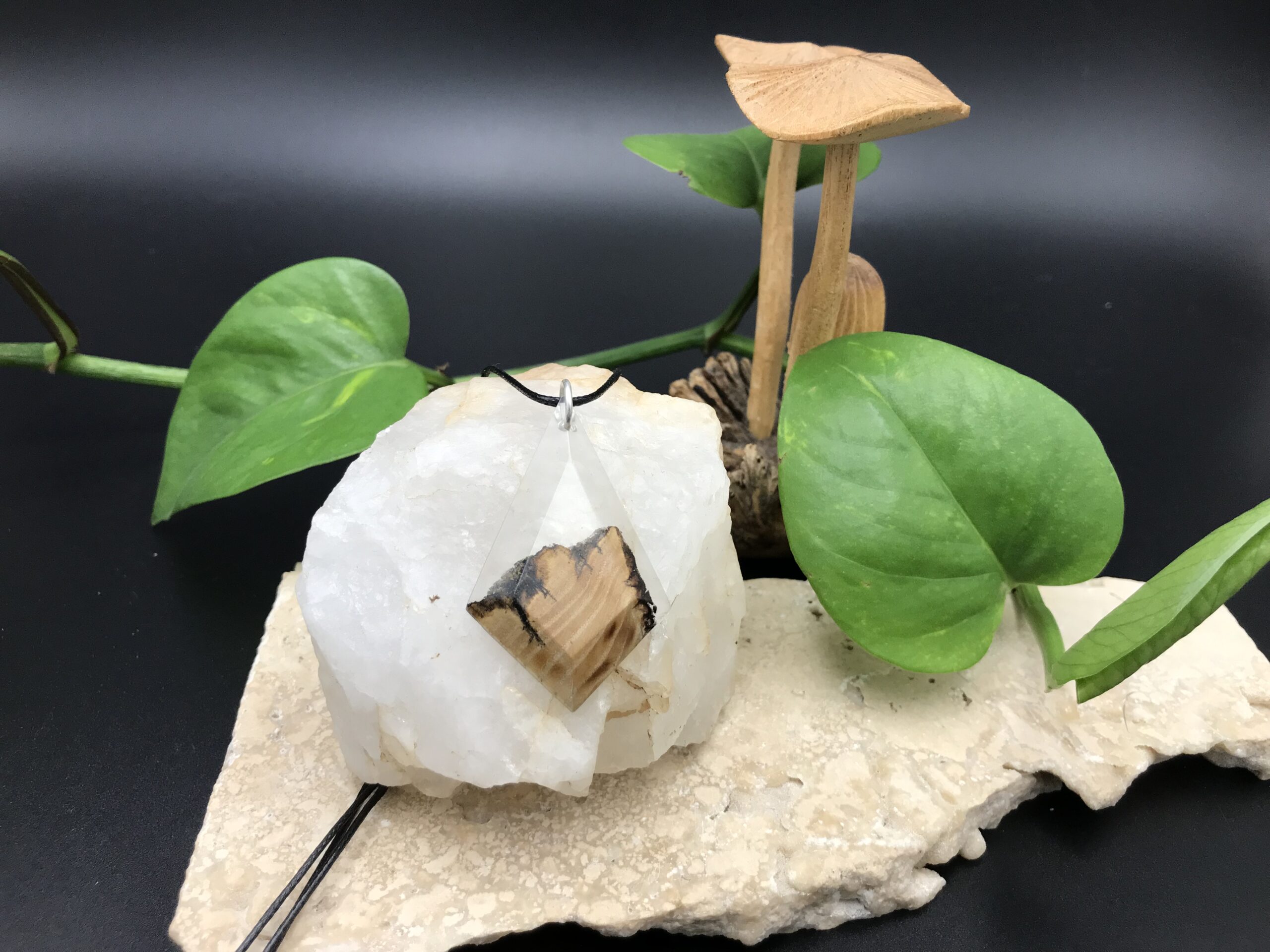Ce pendentif est fabriqué à partir de bois de récupération, il a été découpé à la main au bocfil et sculpté au backstand.