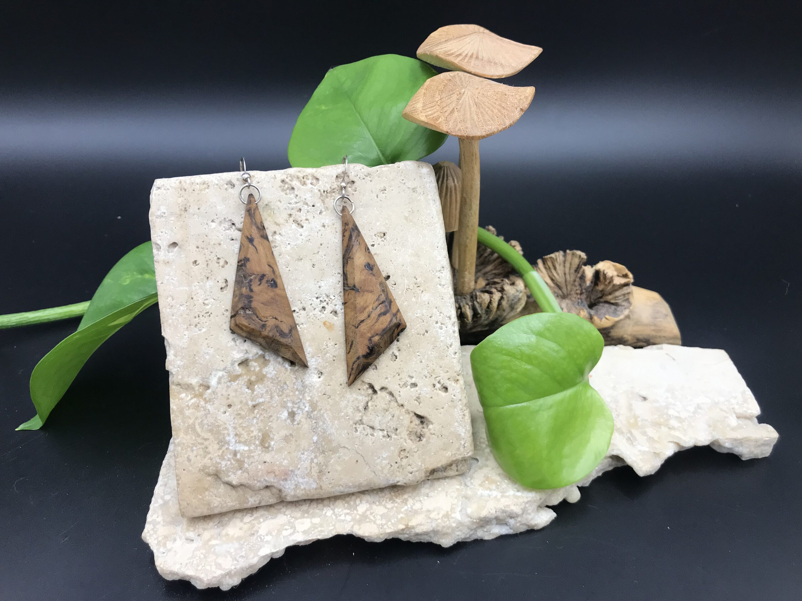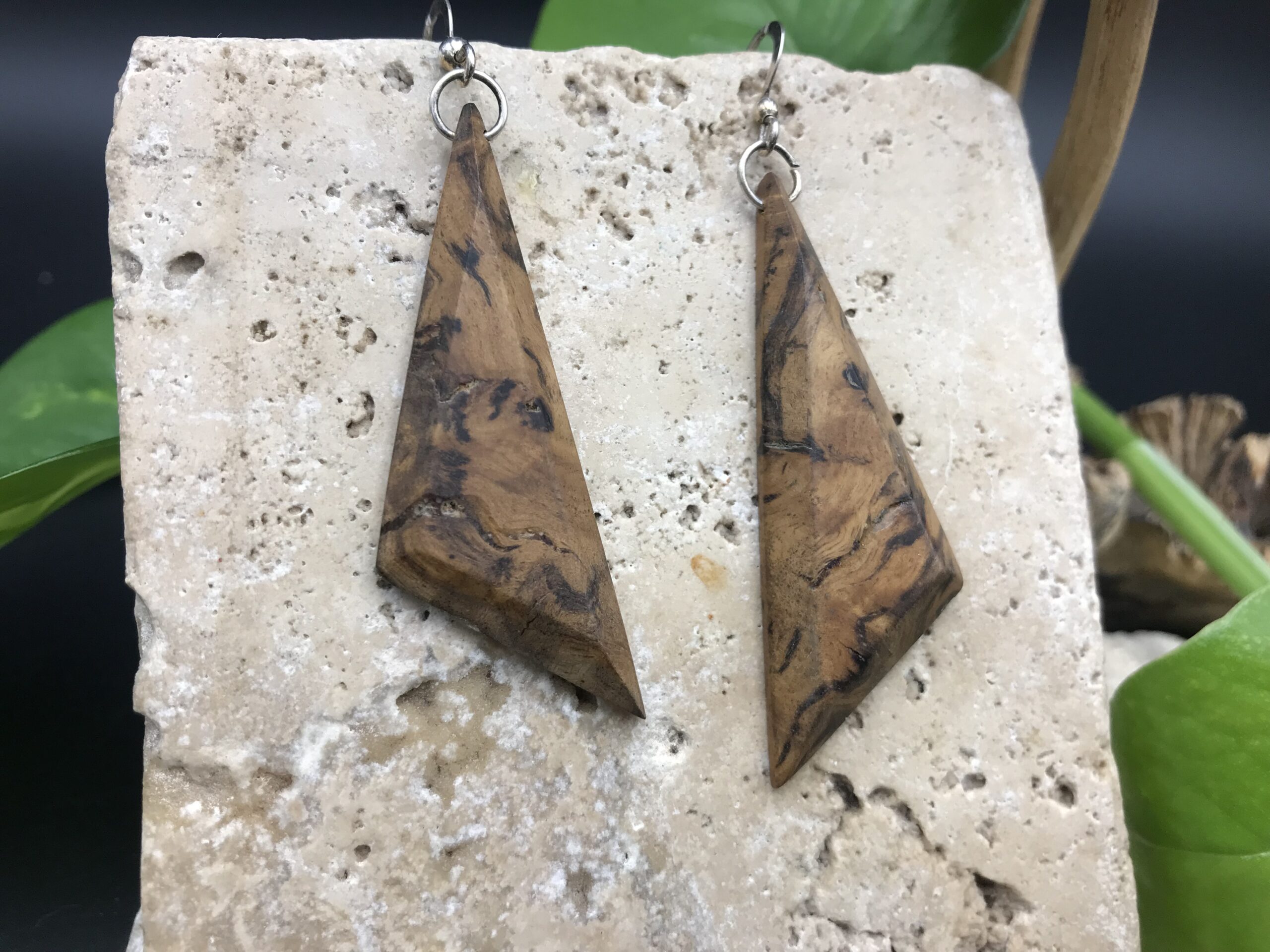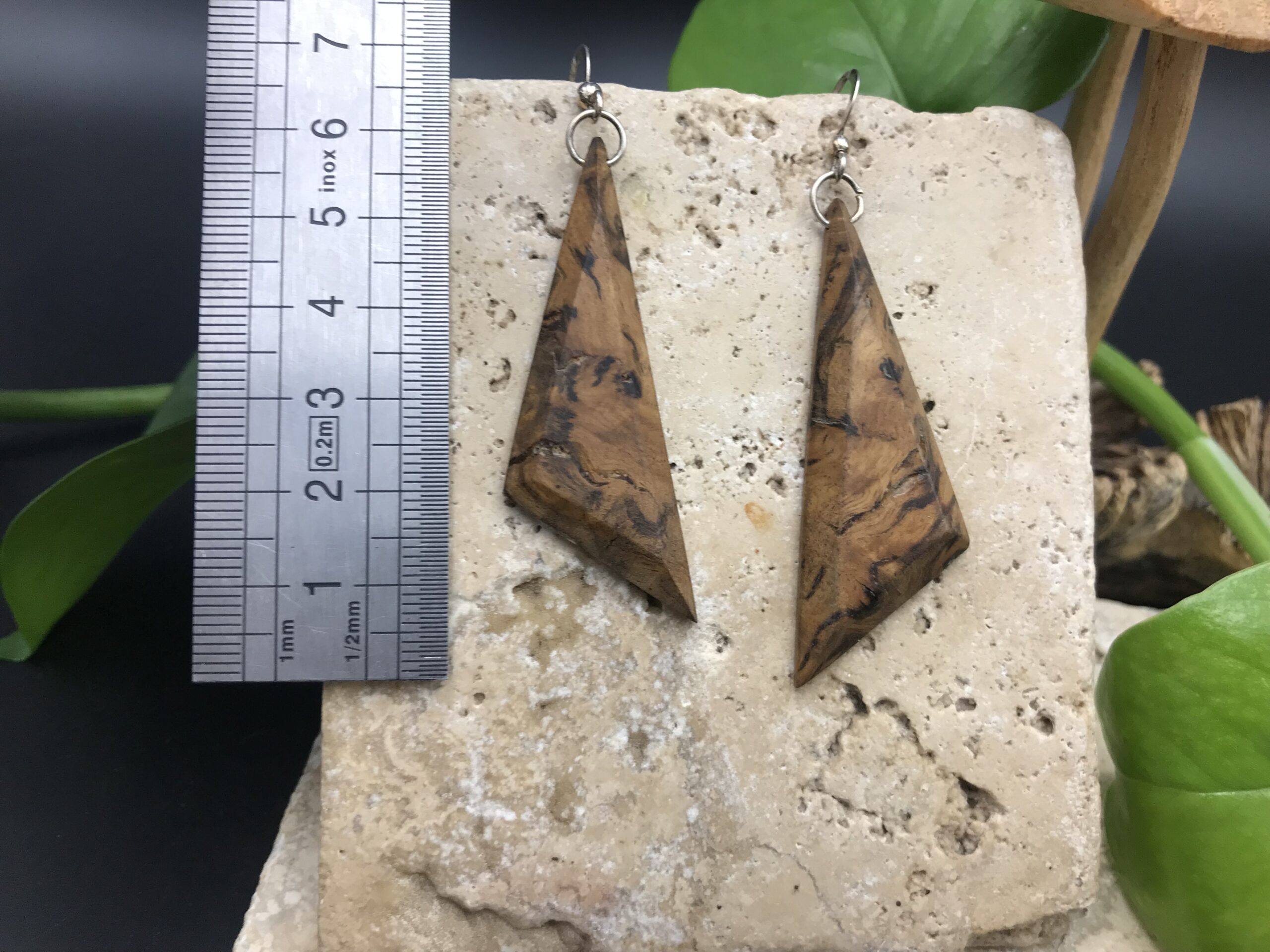 Ces boucles d’oreilles sont fabriquées à partir de bois de récupération, elles ont été découpées à la main au bocfil et sculptées au Dremel.