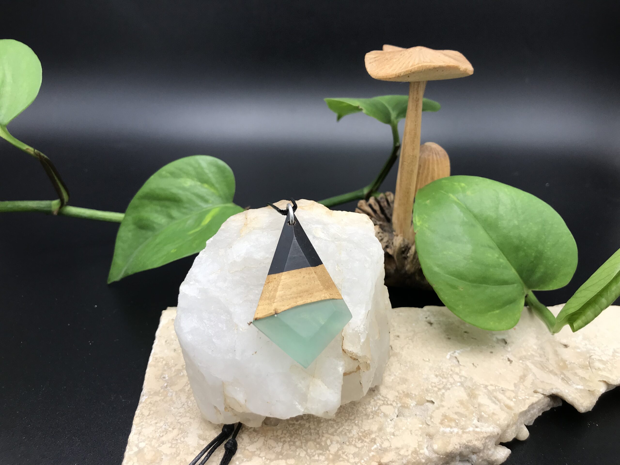 Ce pendentif est fabriqué à partir de bois de récupération, il a été découpé à la main au bocfil et sculpté au backstand.