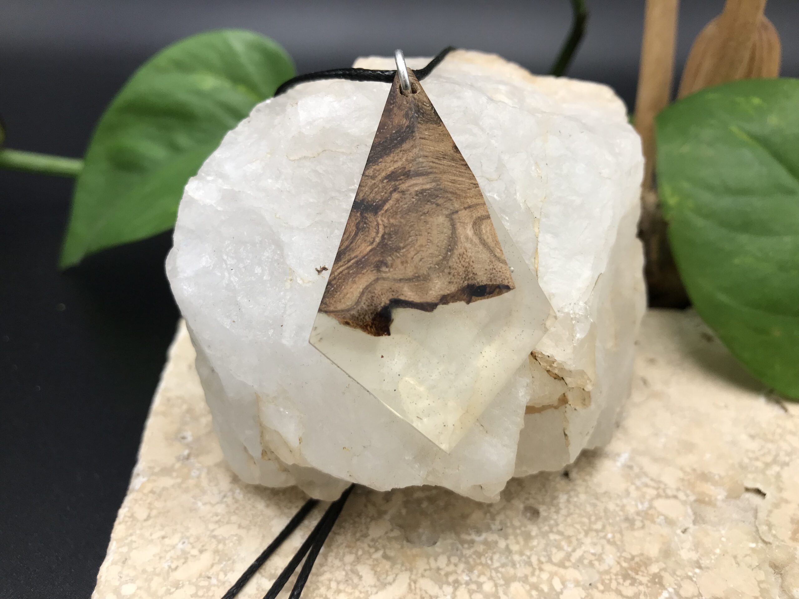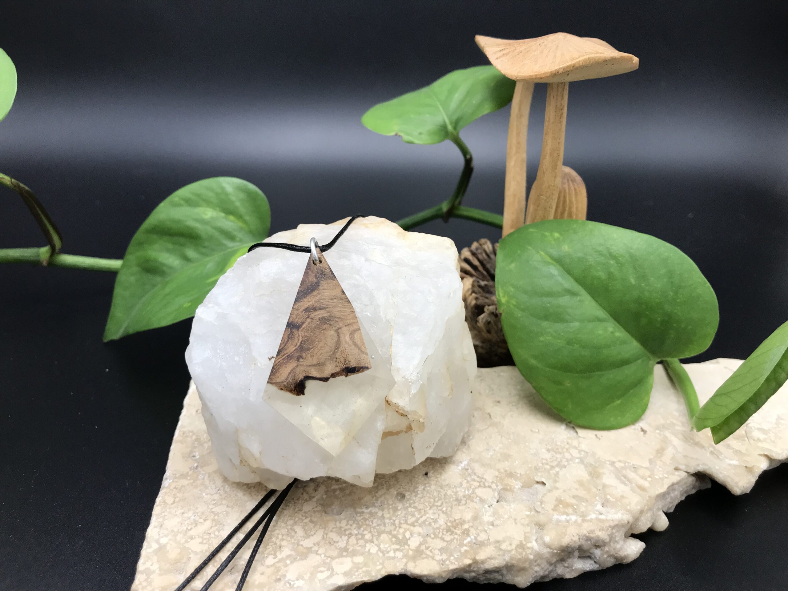 Ce pendentif est fabriqué à partir de bois de récupération, il a été découpé à la main au bocfil et sculpté au backstand.