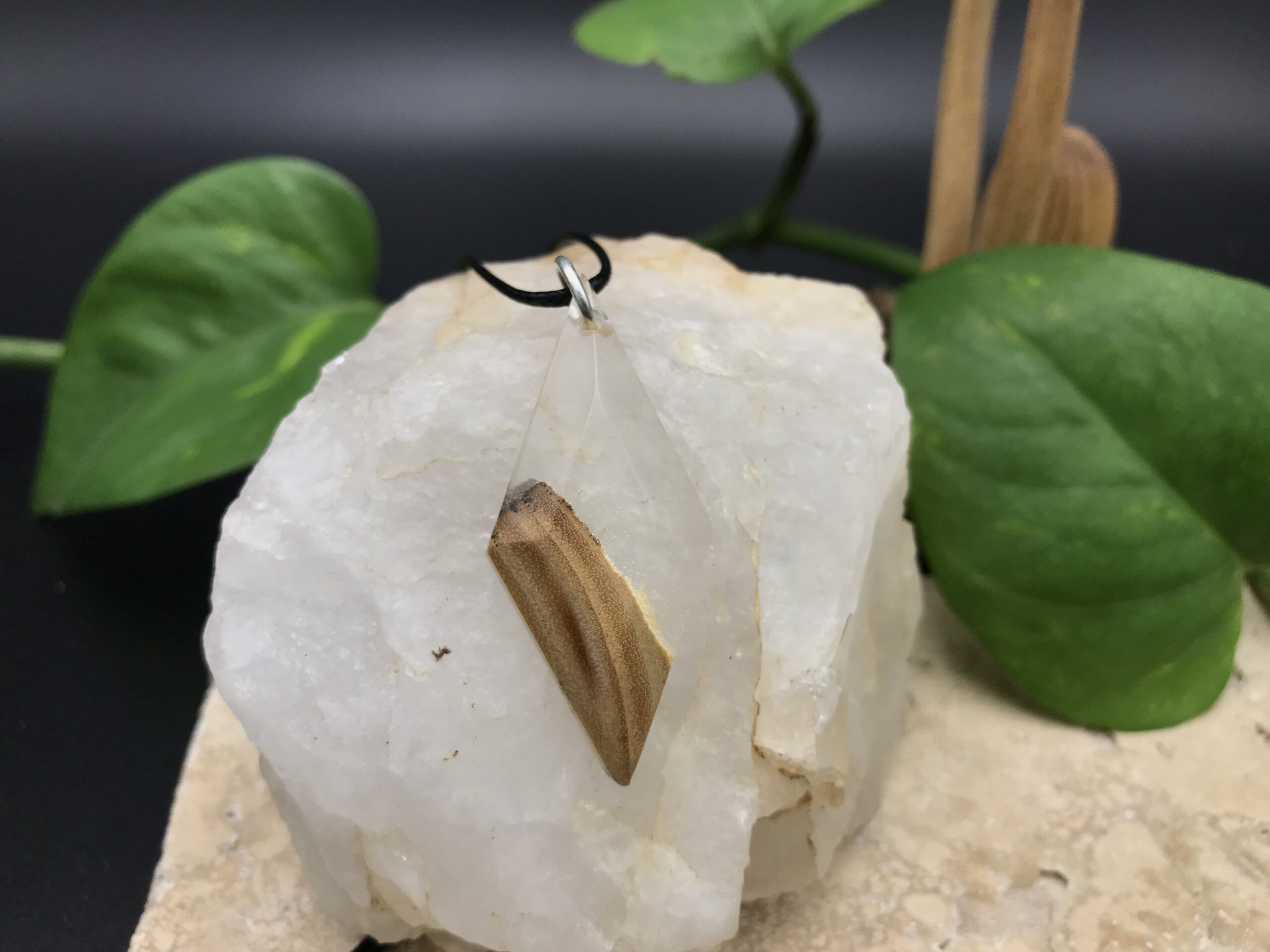 Ce pendentif est fabriqué à partir de bois de récupération, il a été découpé à la main au bocfil et sculpté au backstand.