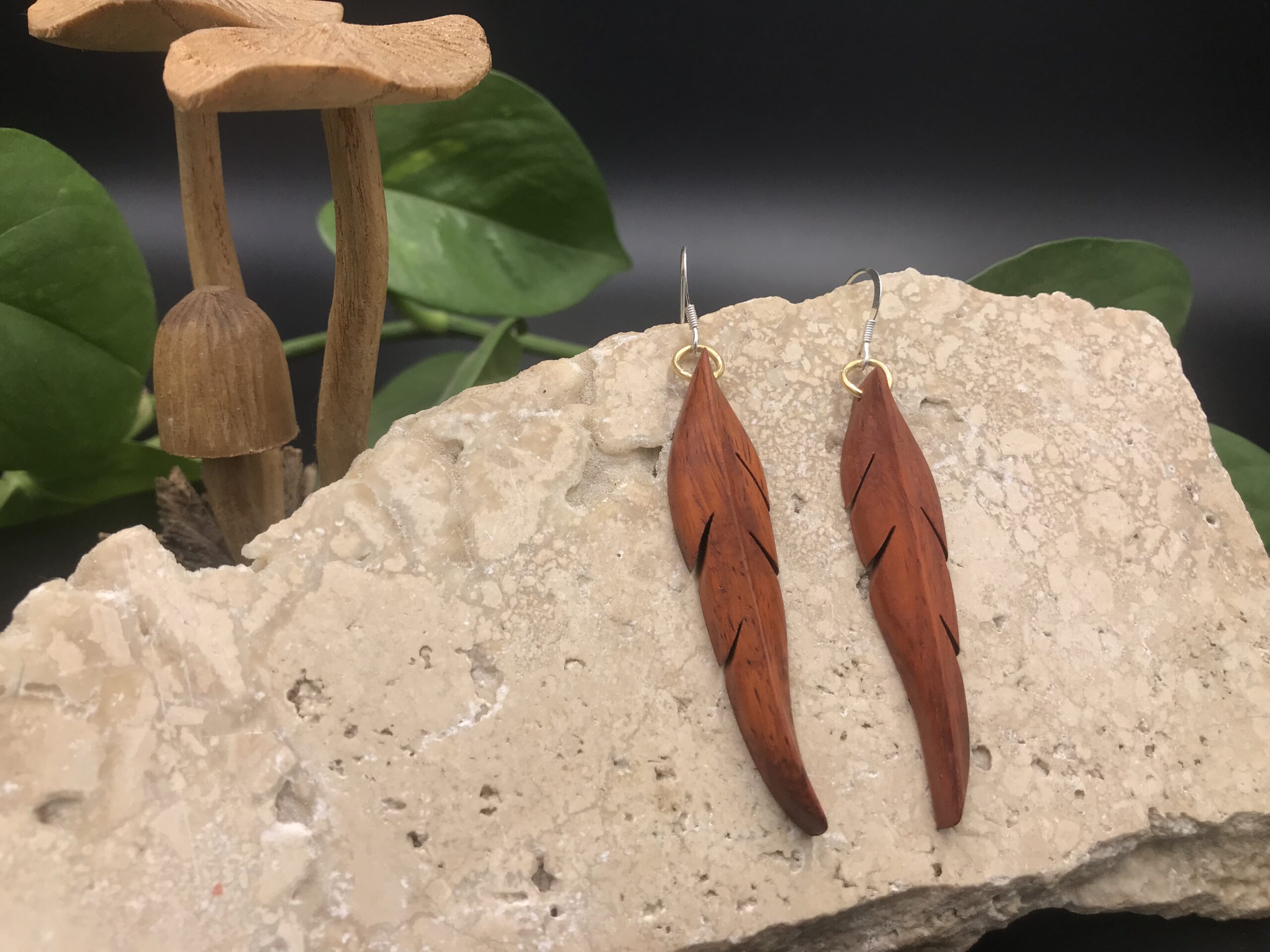 Ces boucles d’oreilles sont découpées à la main au bocfil et sculptées au Dremel.