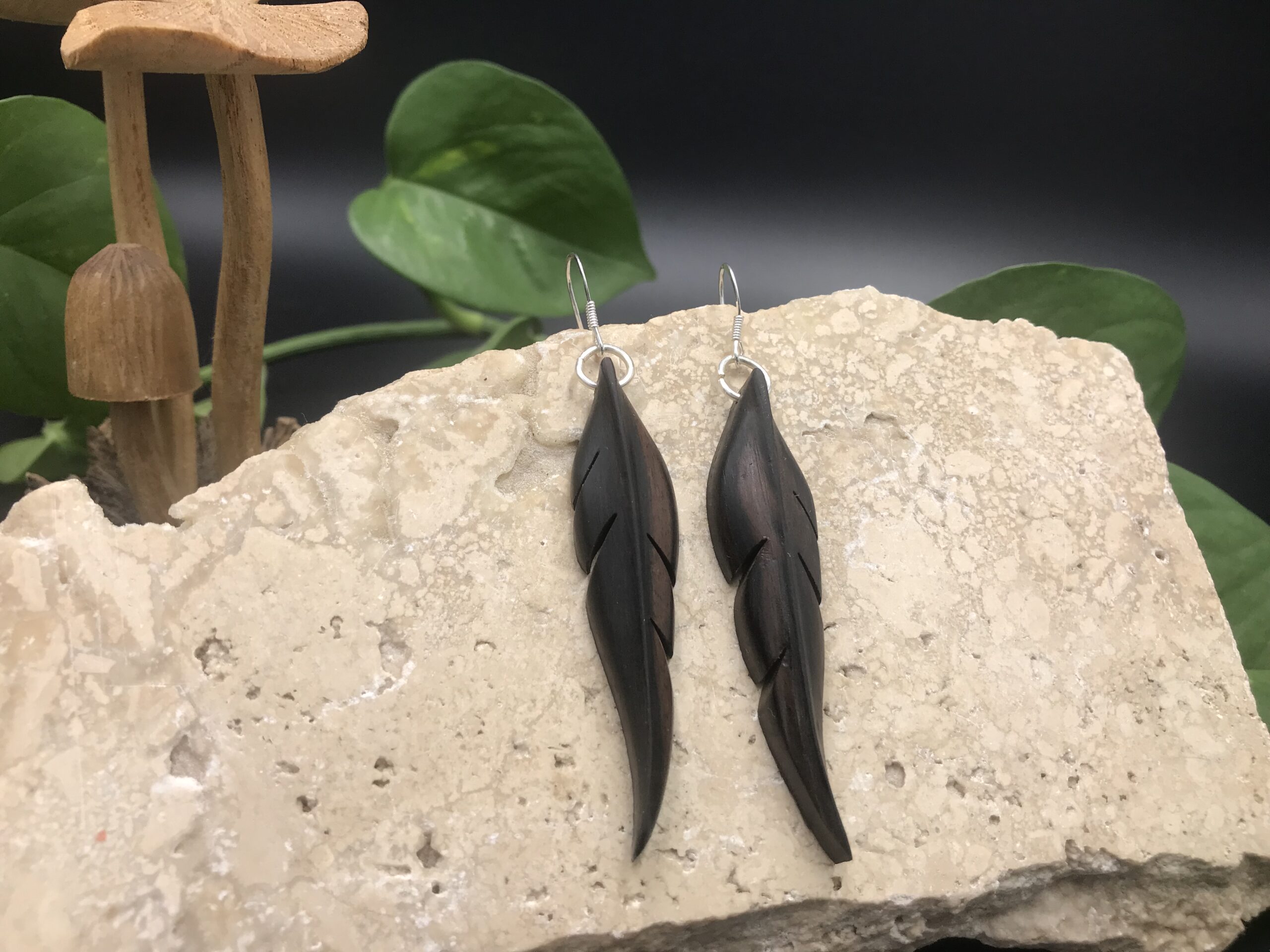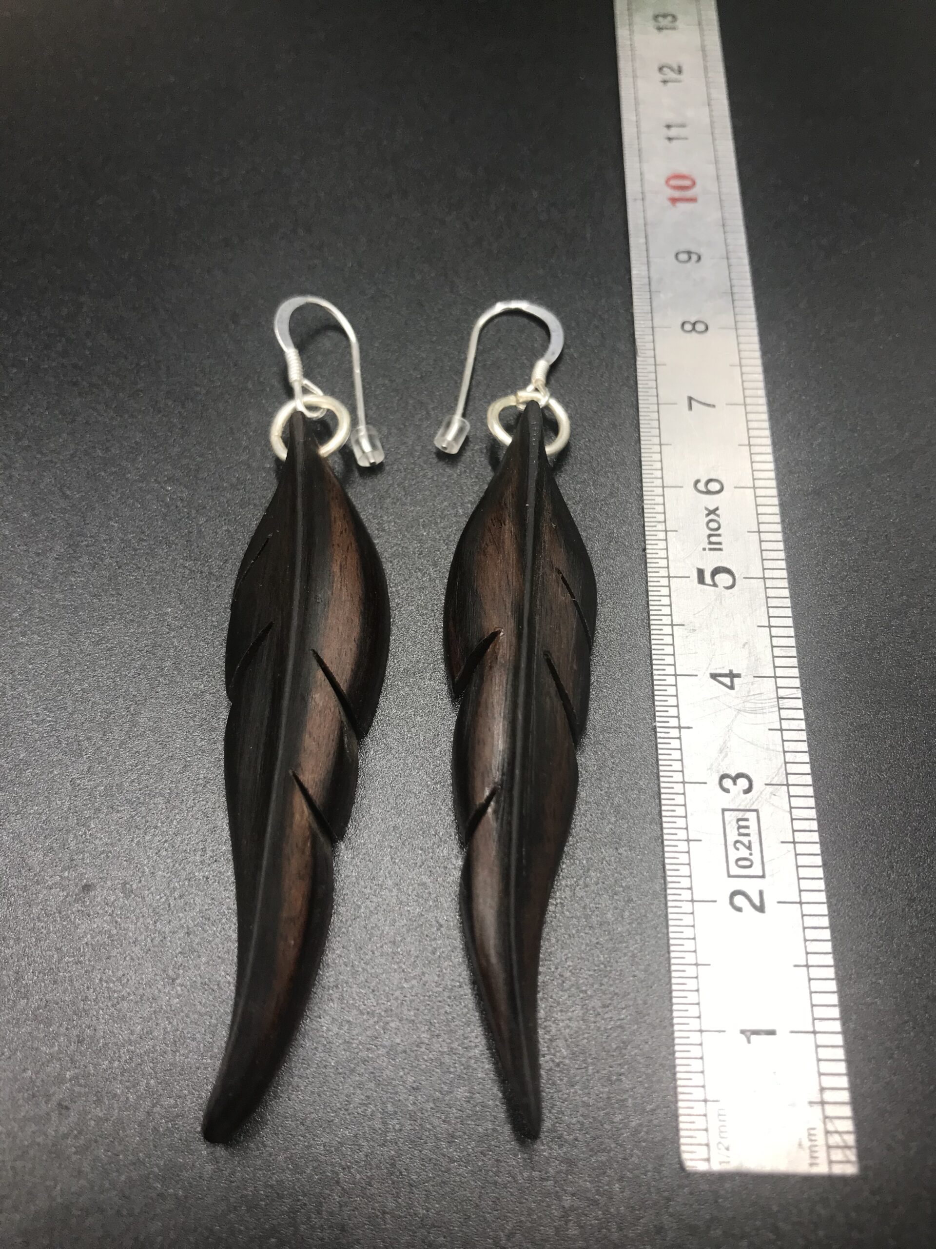 Ces boucles d’oreilles sont découpées à la main au bocfil et sculptées au Dremel.