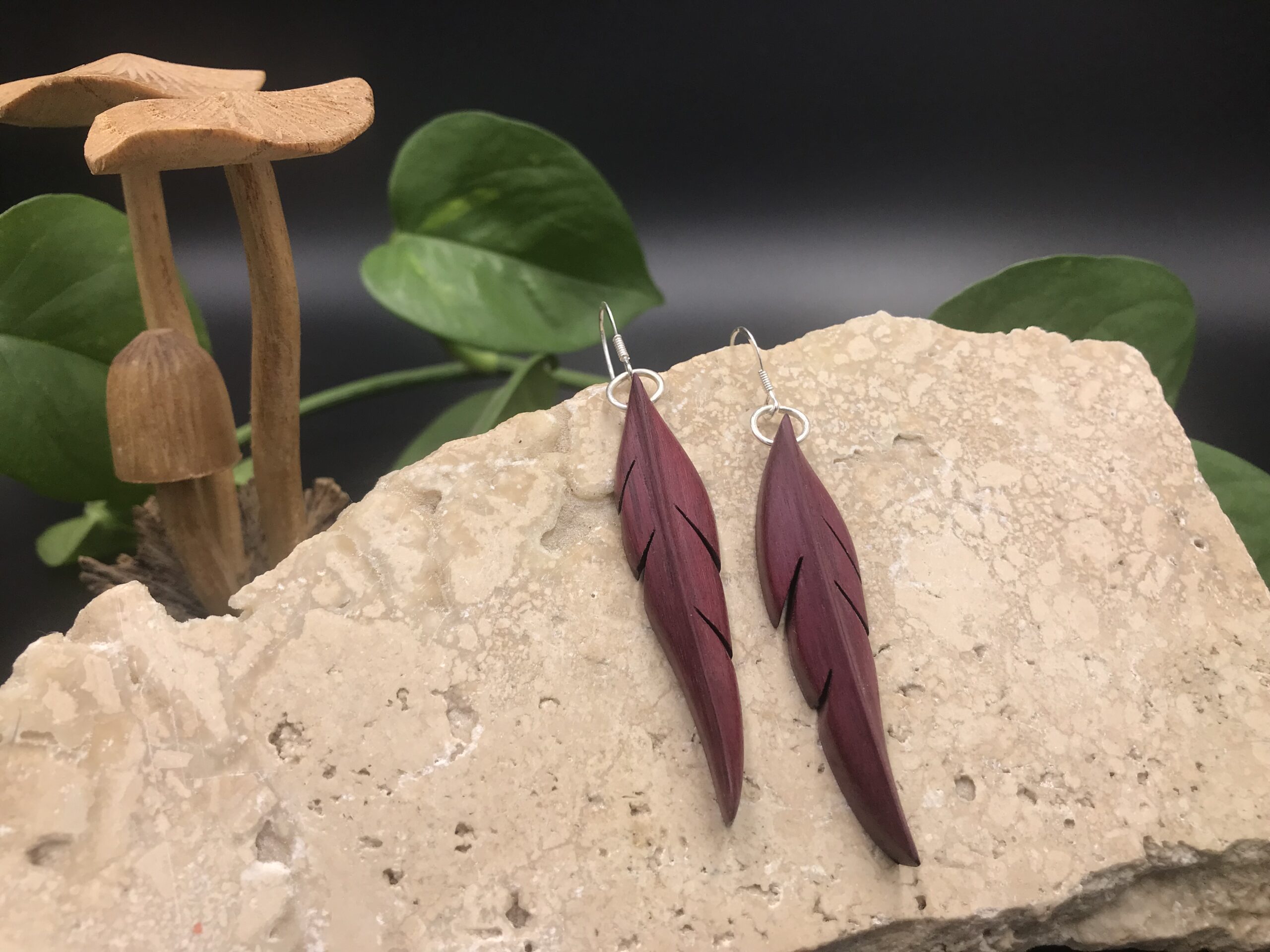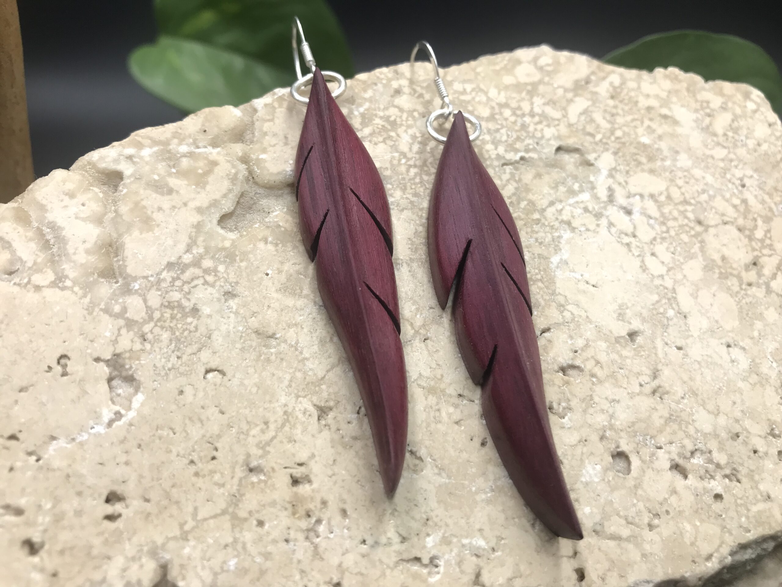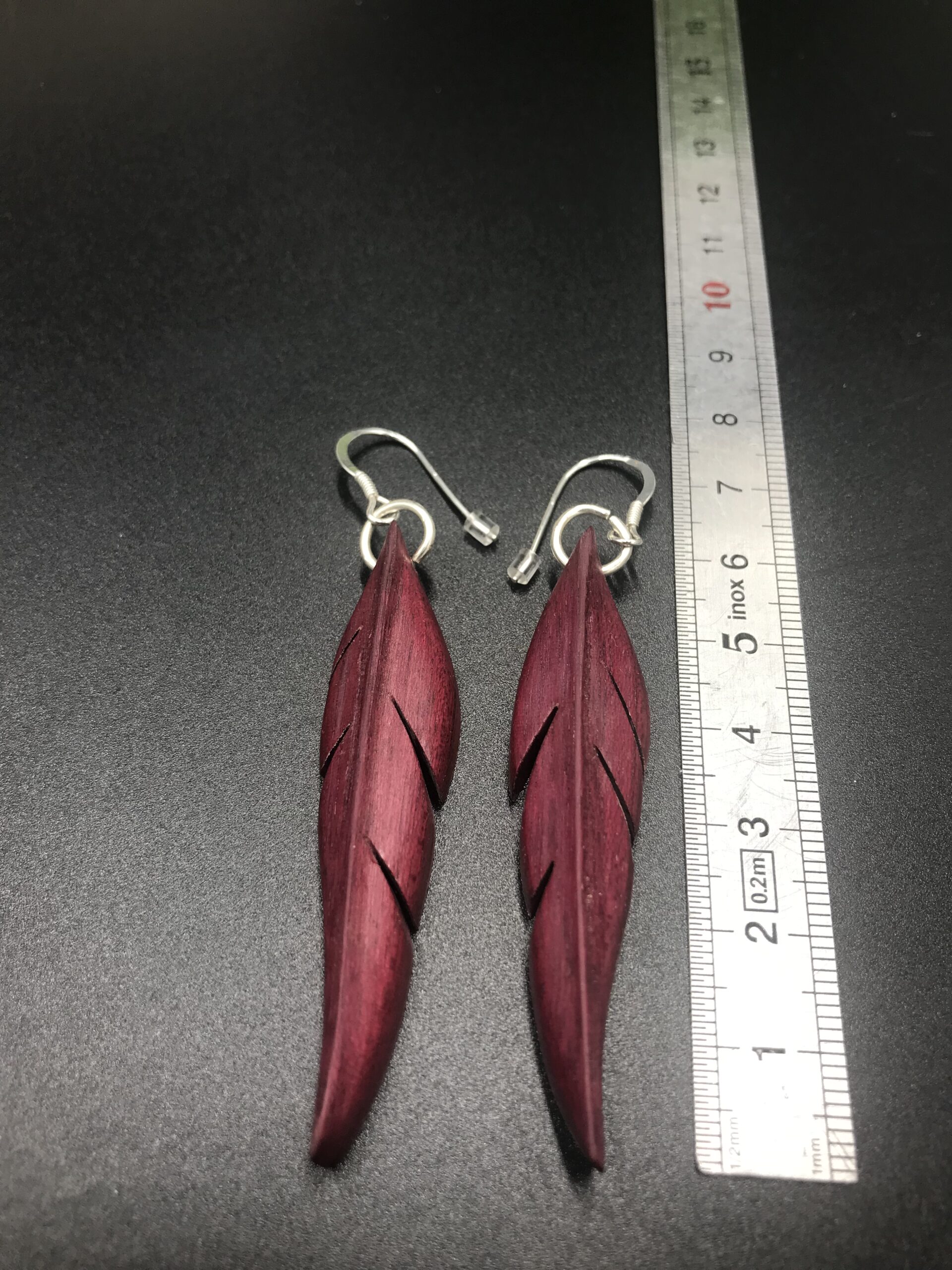 Ces boucles d’oreilles sont découpées à la main au bocfil et sculptées au Dremel.
